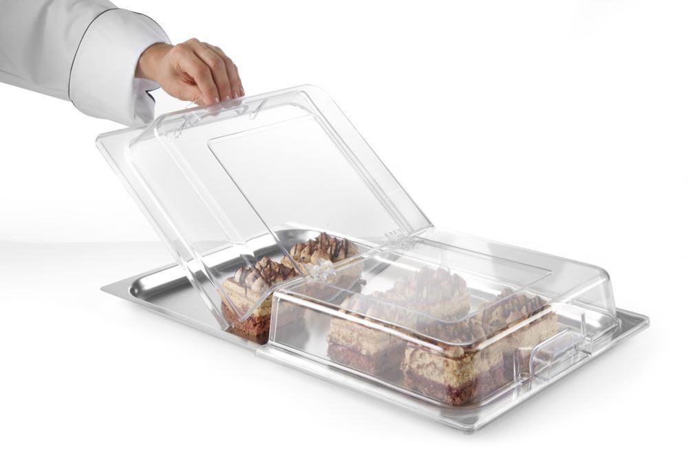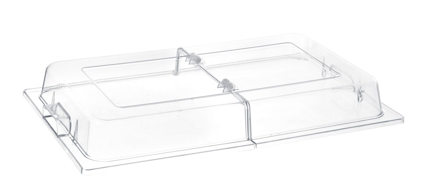 Deze GN 1/1 kap is ontworpen voor intensief gebruik in de professionele keuken. Het 2-delige ontwerp maakt het eenvoudig om de kap te hanteren en snel toegang te krijgen tot de inhoud, wat de efficiëntie tijdens drukke shifts aanzienlijk verhoogt. Het materiaal is lichtgewicht en robuust, waardoor het dagelijks gebruik moeiteloos doorstaat.