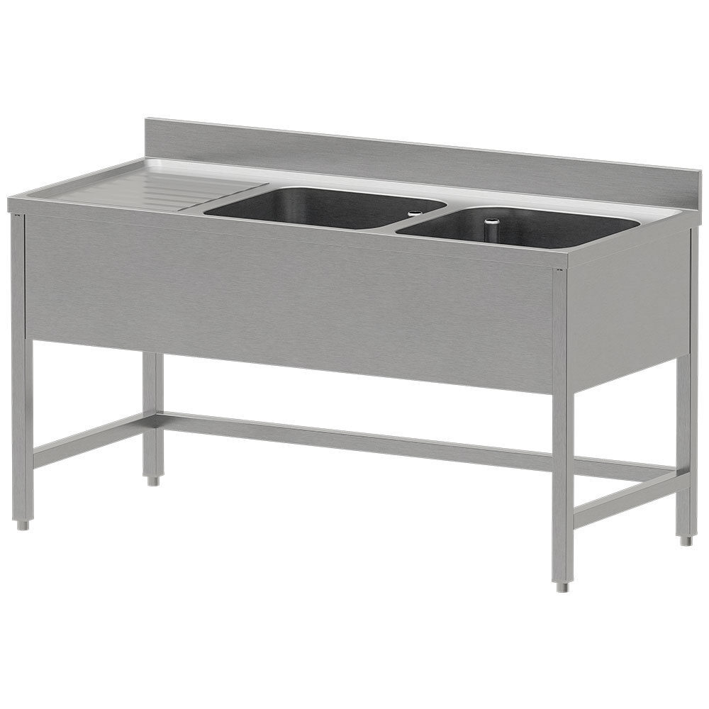 Rvs spoeltafel eco met 2 kuipen en links druipvlak, zonder onderlegplank | Diverso | WR-C2E1-DS6
