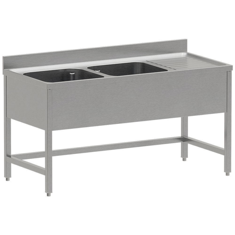Rvs spoeltafel eco met 2 kuipen en rechts druipvlak, zonder onderlegplank | Diverso | WR-E1C2-DD6