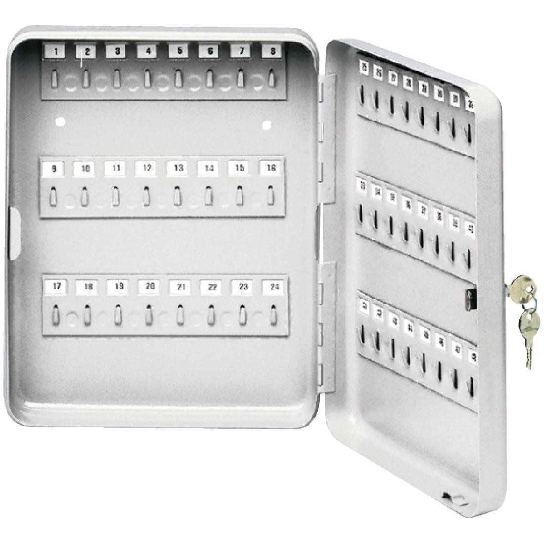 Deze afsluitbare sleutelkast van Safewell is geschikt voor 48 sleutels. De kast is afgewerkt met een krasbestendige gepoedercoate verf zodat hij nog langer meegaat. Kan aan de muur bevestigd worden met de bijgeleverde bouten en is perfect voor hotels, recreatiecentra en recreatiefaciliteiten.