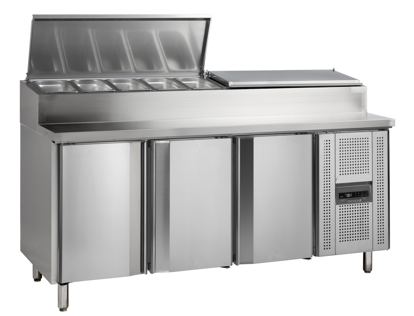 De SS-serie counters voor broodjesbereiding zijn gemaakt van roestvast staal SS304 en is een uitstekende keuze voor professionele keukens. U hebt hier alles wat u nodig hebt, onder handbereik. De koelbak is geschikt voor GN-bakken en de kasten kunnen gemakkelijk worden bijgevuld. De counters zijn leverbaar in diverse afmetingen met 2 of 3 deuren.
