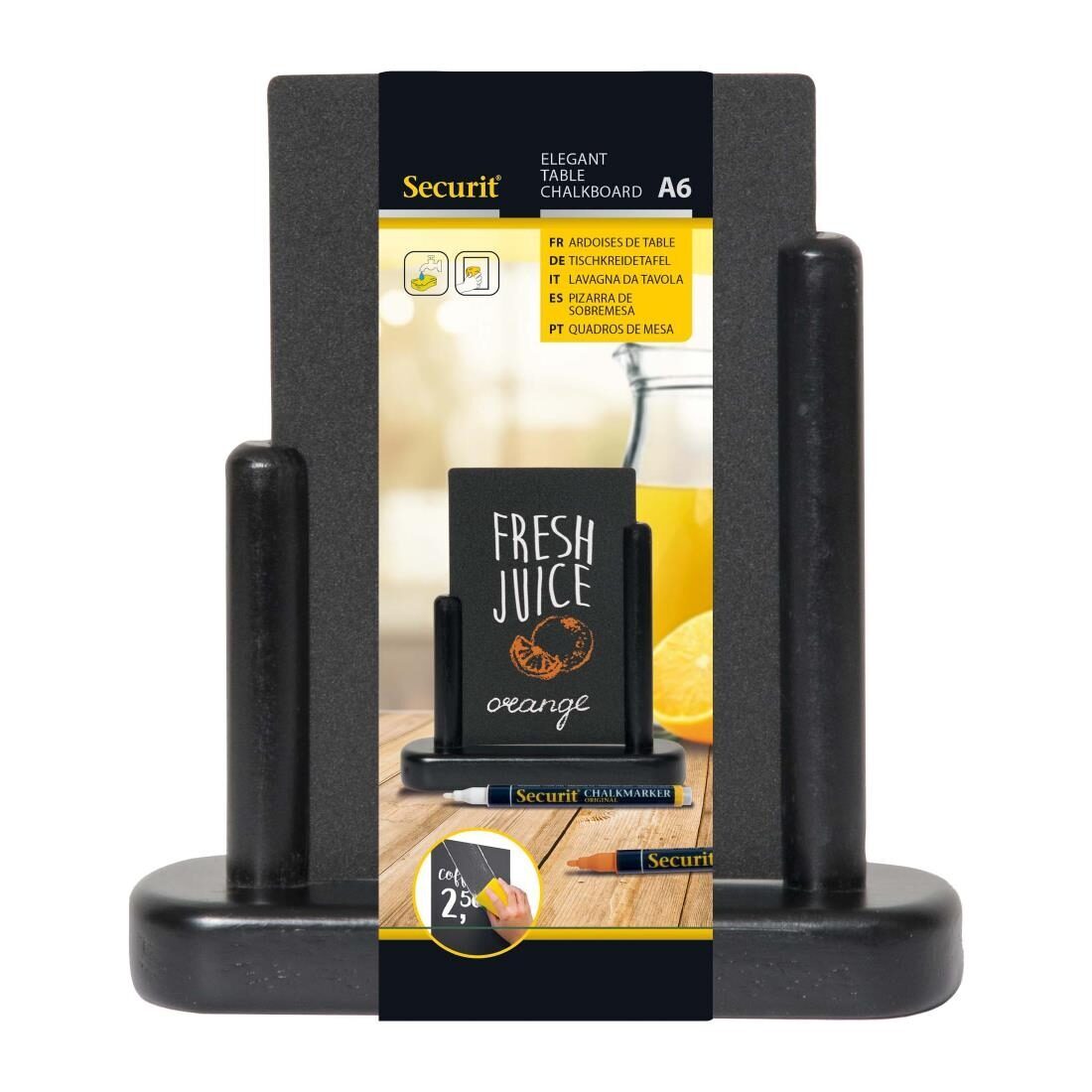 Het Securit tafelkrijtbord is een perfecte manier om een menukaart, speciale aanbieding of evenement te promoten.