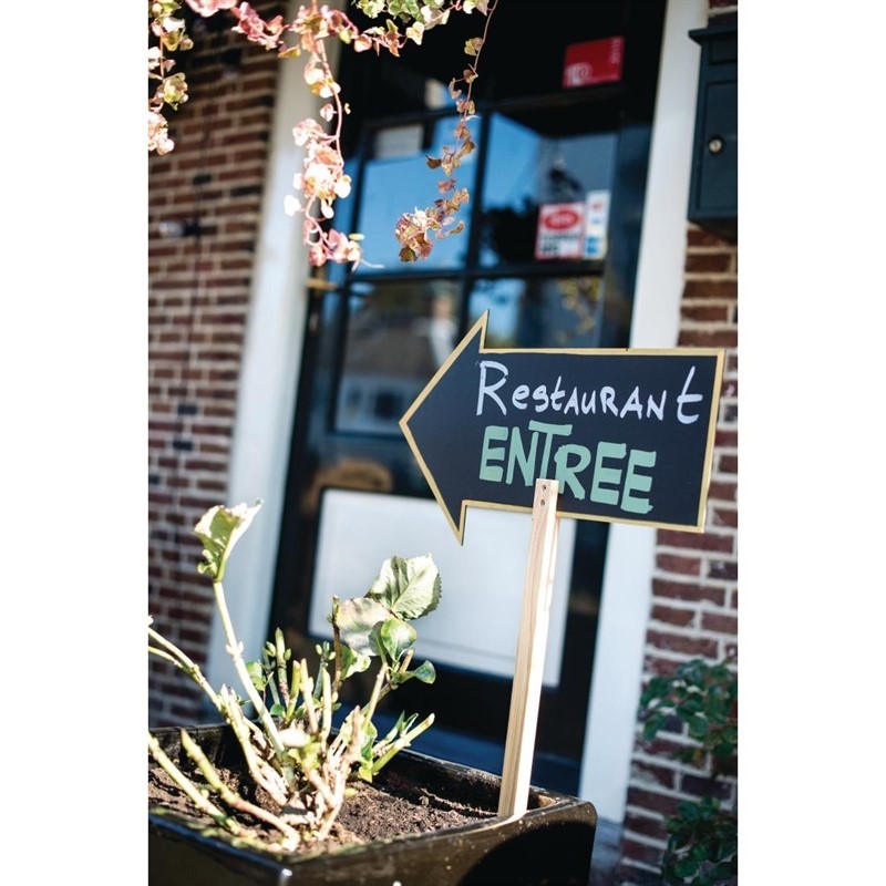 Een zwart krijtbordje in pijlvorm voor het aangeven van de richting voor uw klanten. Dankzij de pin kan u het bordje eenvoudig in de grond of in een plantenpot te plaatsen. Wordt geleverd met een witte vloeibare krijtstift en is eenvoudig te reinigen met de krijtreiniger van Securit (Y994).