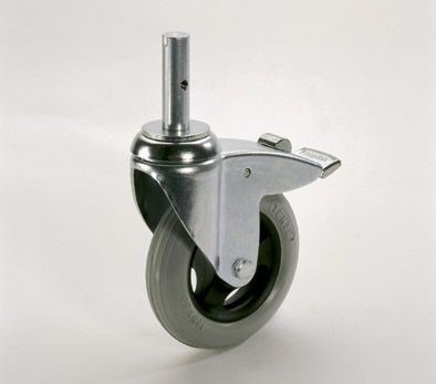 Verzinkt / verchroomde wielen met een kogelgelagerd speciaal band Ø 125 mm met "no more flat", geluiddempend en uitermate geschikt voor oneffen vloeren en buitentransport. (zie foto)