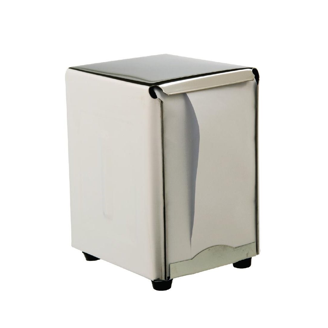 Klassieke RVS dispenser met jaren 50 uitstraling. Aan 2 zijden te vullen. Afmetingen (cm): 14(h)x9,5(b). Recycled eenlaags servetten worden apart verkocht.