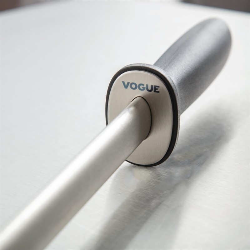 Houd uw koksmessen in topconditie met deze diamantstalen slijpstaaf van Vogue. Het aanzetstaal is ontworpen met een stalen kern, omhuld met een chromen mantel en microkristallijn diamanten oppervlak. Dit levert ongeëvenaarde resultaten met slechts enkele slagen - u zult nooit meer terug willen naar een traditionele slijpstaaf.