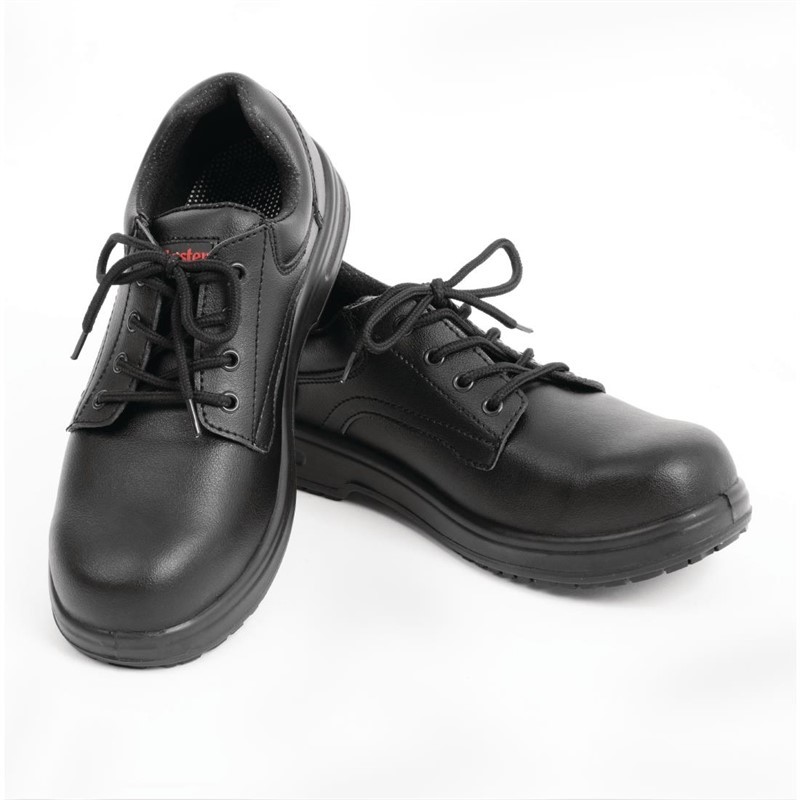 Deze praktische en voordelige veiligheidsschoenen van Slipbuster zijn onmisbaar op de werkvloer. De stalen neus beschermt de voeten van uw personeel tegen scherpe of zware objecten in de keuken. Zo wordt de veiligheid op de werkvloer vergroot en worden blessures en letsel voorkomen.