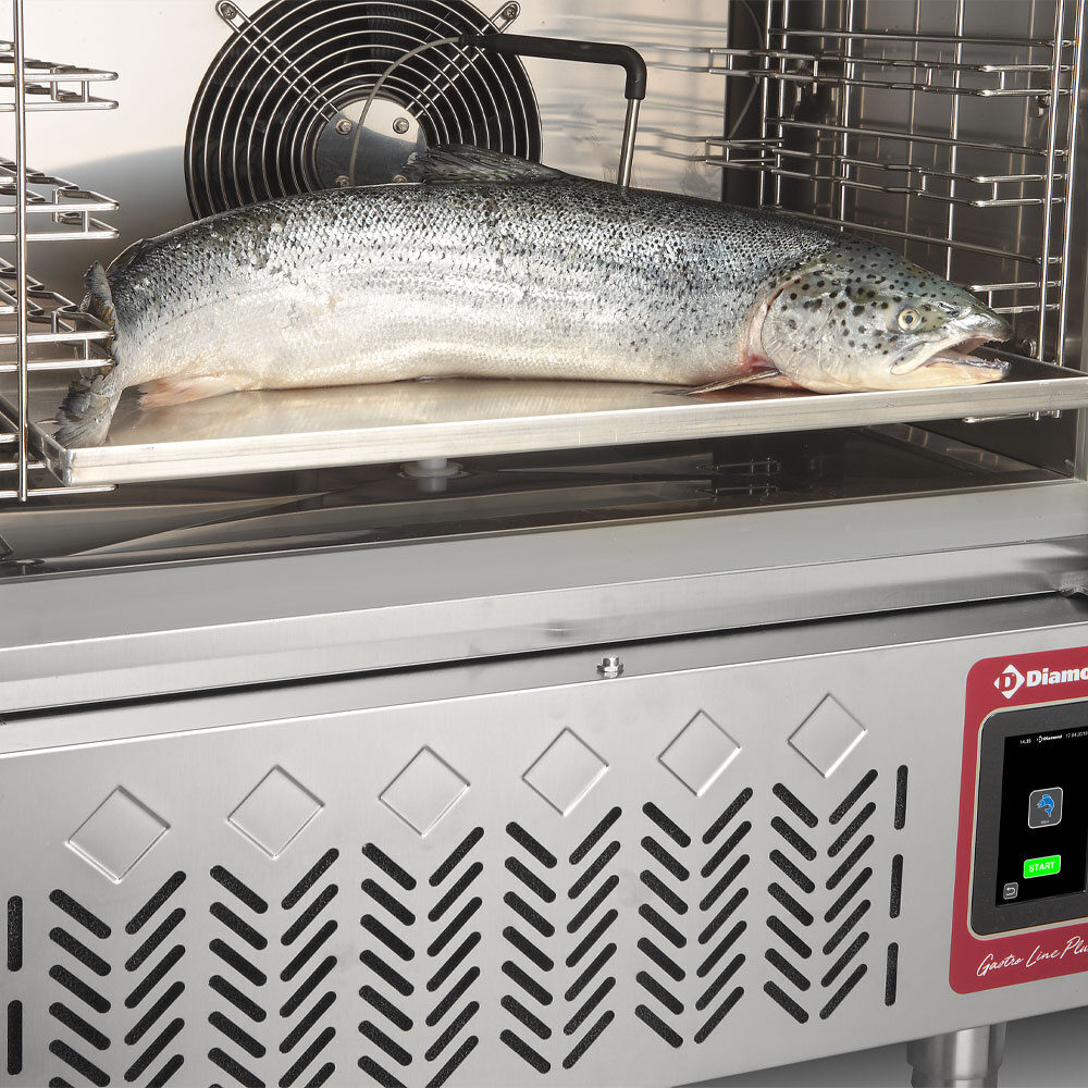 - Voedselveiligheid in de koudeketen is gebaseerd op één basisprincipe: C.A.D. de overgang van de kerntemperatuur van +70°C naar +3°C in 90 minuten (VK-norm) of +65°C naar +10°C in 110 minuten (NF-norm) en van +70°C naar -18°C in 240 minuten (VK-norm) of van +65°C naar -18°C in 270 minuten (NF-norm), Diamond cellen garanderen dat u deze verplichtingen nakomt. Het unieke ontwerp van de behuizing, gekoppeld aan de ventilator(en), zorgt voor temperatuurhomogeniteit en voorkomt uitdroging en vorstvorming op het voedseloppervlak.