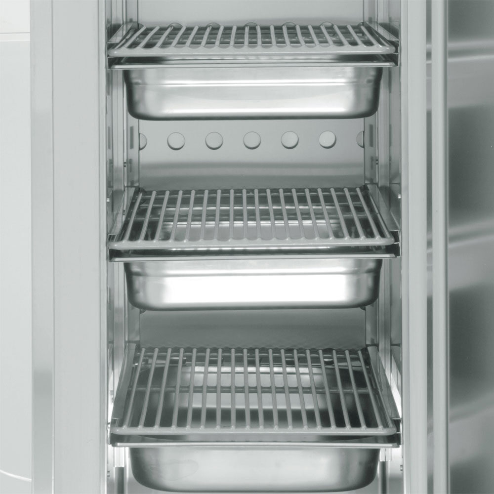 - Standaard toebehoren: 5 paar geleiders "anti kantelbaar" en 3 roosters GN 1/1.