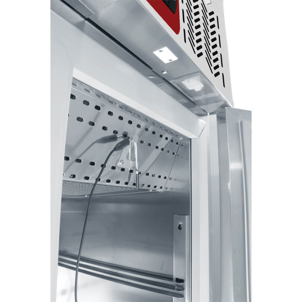 - Compressor klimaatklasse 4 (30°C Temperatuur & 55% Luchtvochtigheid), ingebouwd in de kast (toegankelijkheid langs de voorkant), geventileerde condensor, ventilatormotor IP45.
