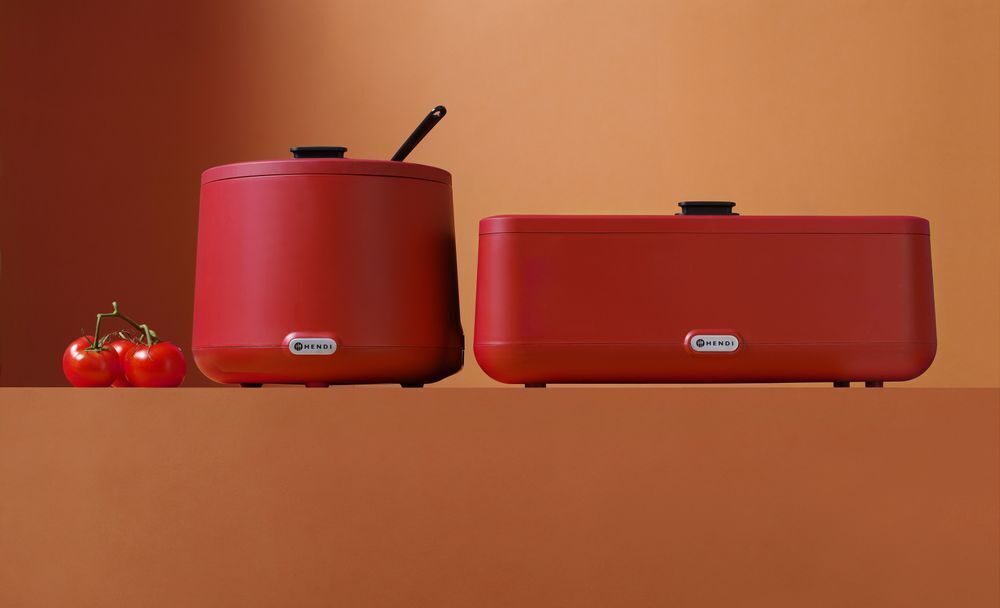 Geef uw buffet een professionele uitstraling met de bekroonde UNIQ-soepketel van Hendi, ontworpen door Robert Bronwasser. Deze stijlvolle rode soepketel combineert een modern design met hoogwaardige prestaties, waardoor uw soepen en warme gerechten altijd op de perfecte temperatuur worden gepresenteerd. Een onmisbare toevoeging voor elke horecaondernemer die waarde hecht aan zowel esthetiek als efficiëntie.