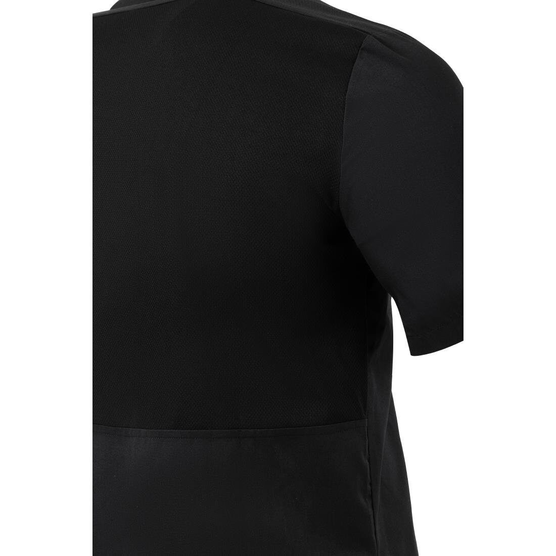 Voeg slimme en moderne kleding toe aan uw personeelsuniform met de koksbuis met korte mouwen uit de Harlem-reeks van Southside (UK M). Dankzij de zwarte kleur, bandkraag en relaxte pasvorm verbergt de koksbuis vlekken, zorgt voor een eigentijdse uitstraling en behoudt uitstekend comfort tijdens urenlang gebruik. De Southside koksbuis is gemaakt van polykatoen en is duurzaam genoeg om commercieel gebruik en witwassen aan te kunnen zonder de staat van nieuwheid te verliezen. En met een stofgewicht van 190 g/m2 ¿ naast mesh-panelen ¿ is de Southside koksbuis ademend, zodat uw personeel koel blijft in drukke commerciële keukens. Bovendien heeft het Harlem-jack een ontwerp met ritssluiting, waardoor het gemakkelijk aan- en uit te trekken is.