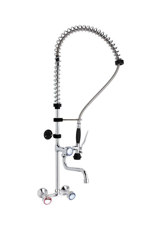Kraanhoogte: 1010 mm.Wandgemonteerde HENDI-spoelkraan met draaibare uitloop en afzonderlijke koud- en warmwateraansluiting. Voorzien van een hogedrukbestendige douchekop voor efficiënt reinigen in de professionele keuken. Met een hoogte van 1010 mm biedt de kraan voldoende werkruimte. De kunststof afscherming en in lengte aanpasbare wandbeugel zorgen voor optimale controle en gebruiksgemak, ook in compacte werkruimtes.