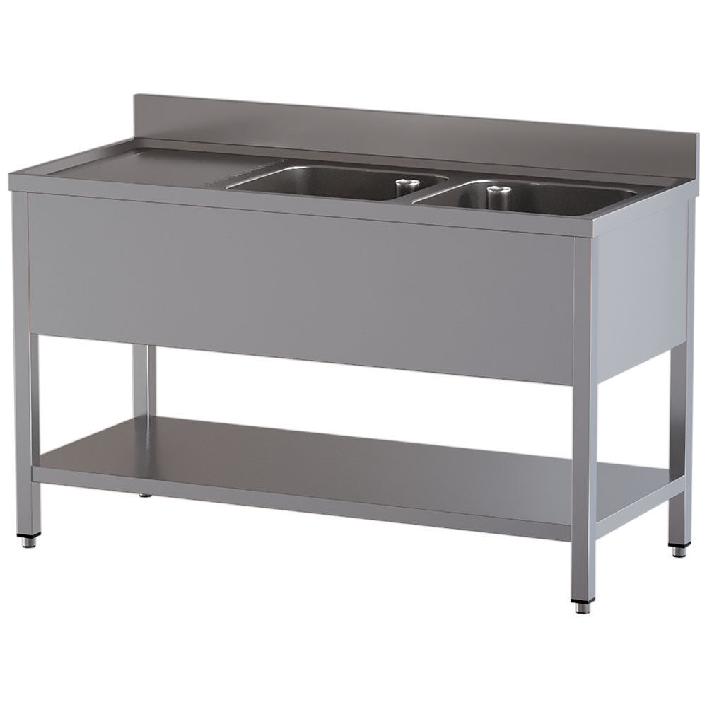 Spoeltafel 2 kuipen en 1 afdruipblad links, met onderlegplank | Diamond | L1421/6D-SS3