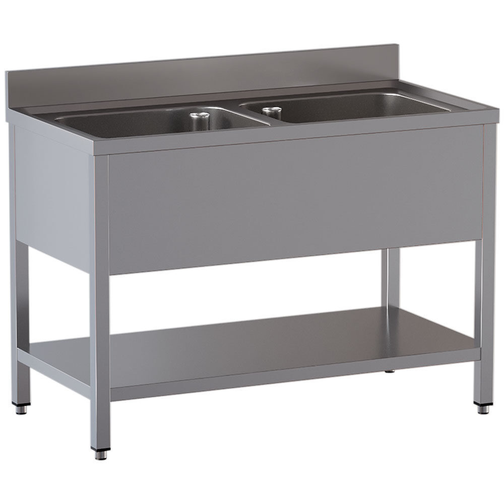 Spoeltafel 2 kuipen met onderlegplank | Diamond | L1421/D-SX3