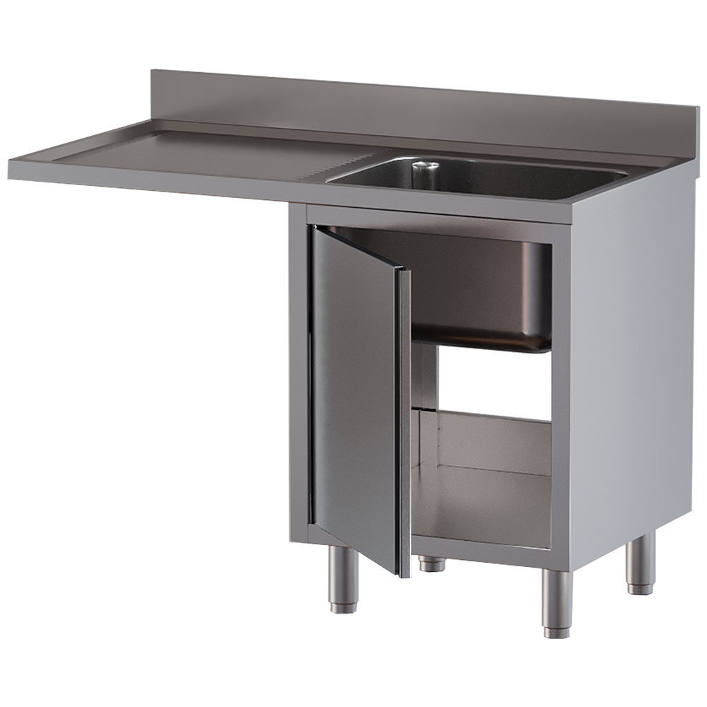 - Spoelbakblad in geperst roestvrij staal AISI 304 met rechte achteropstand van 100 mm.