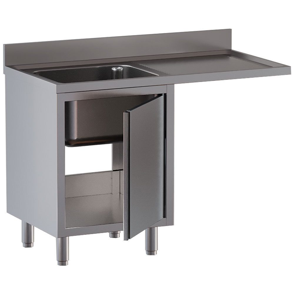 Spoeltafel met 1 kuip, druipvlak rechts, op kast met 1 draaideur en ruimte voor vaatwas | Diamond | L1411/VAD-SD3