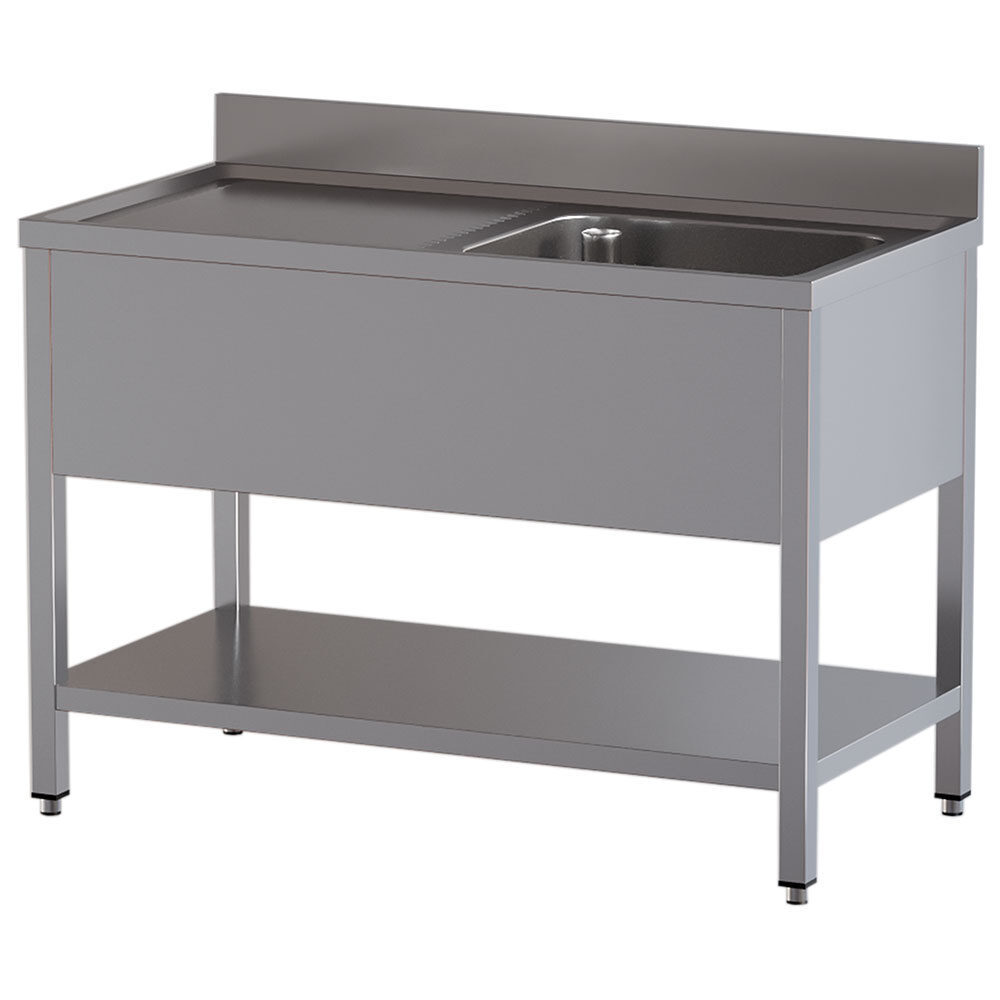 Spoeltafel met 1 kuip en 1 afdruipblad links, met onderlegplank | Diamond | L1211/6D-SS2