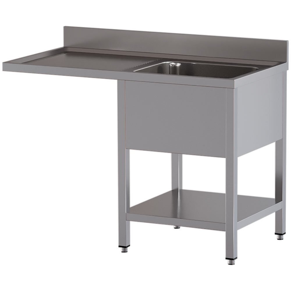 Spoeltafel met 1 kuip en 1 afdruipblad links, met onderlegplank en ruimte voor vaatwasser | Diamond | L1411/VD-SS1