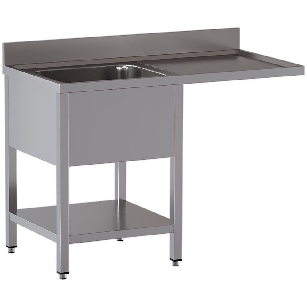 Spoeltafel met 1 kuip en 1 afdruipblad rechts, met onderlegplank en ruimte voor vaatwasser | Diamond | L1411/VD-SD1