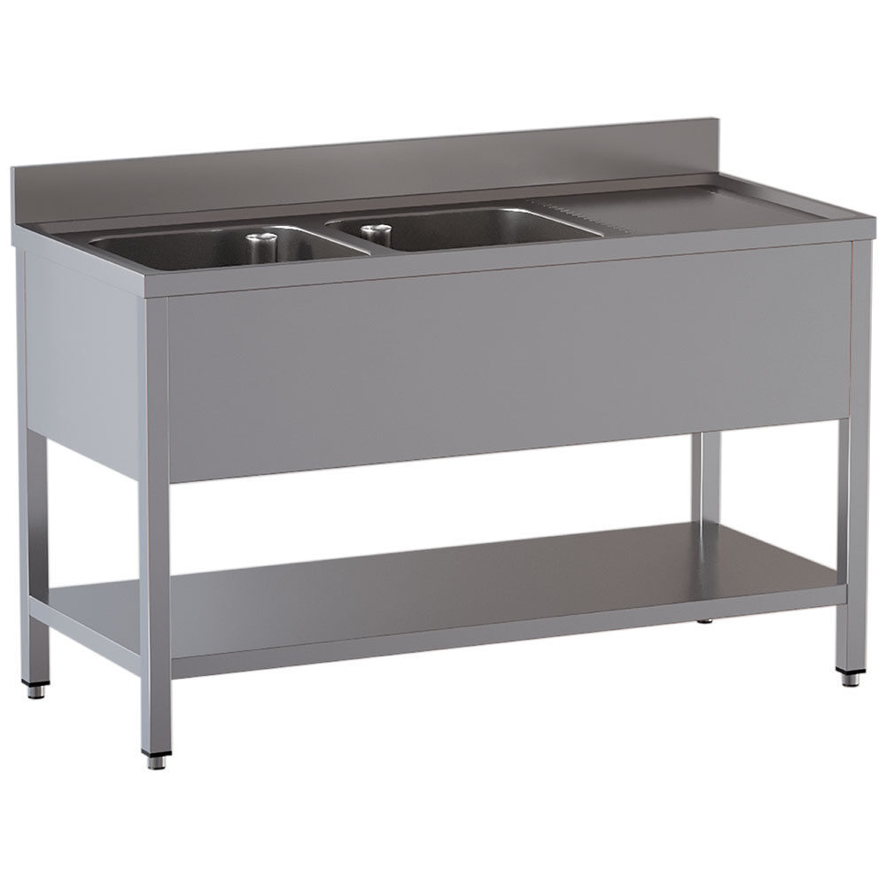 Spoeltafel met 2 kuipen en 1 afdruipblad rechts, met onderlegplank | Diamond | L1421/D-SD4