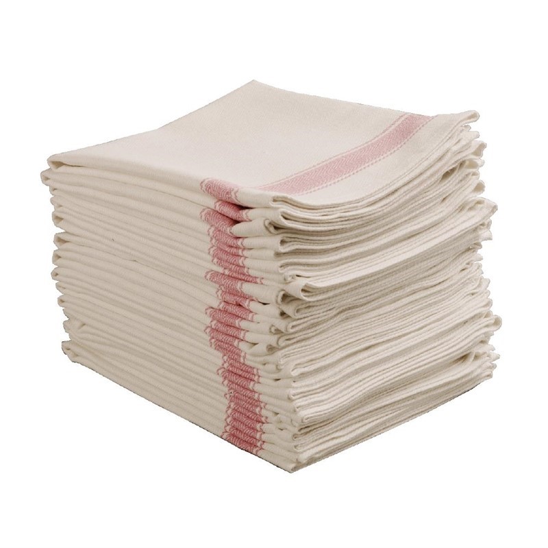 Deze theedoek van Vogue is van stevige kwaliteit en droogt daarom snel en grondig. De doek is gemaakt van 70% katoen en 30 % polyester en is zeer absorberend. Handig om servies, glaswerk, bestek en werkbladen snel te drogen. De doek is ook verkrijgbaar in het rood zodat u ze per aangewezen gebied kan gebruiken om kruisbesmetting te voorkomen. Dankzij zijn grote formaat ook geschikt om grote pannen en keukengerei te drogen.