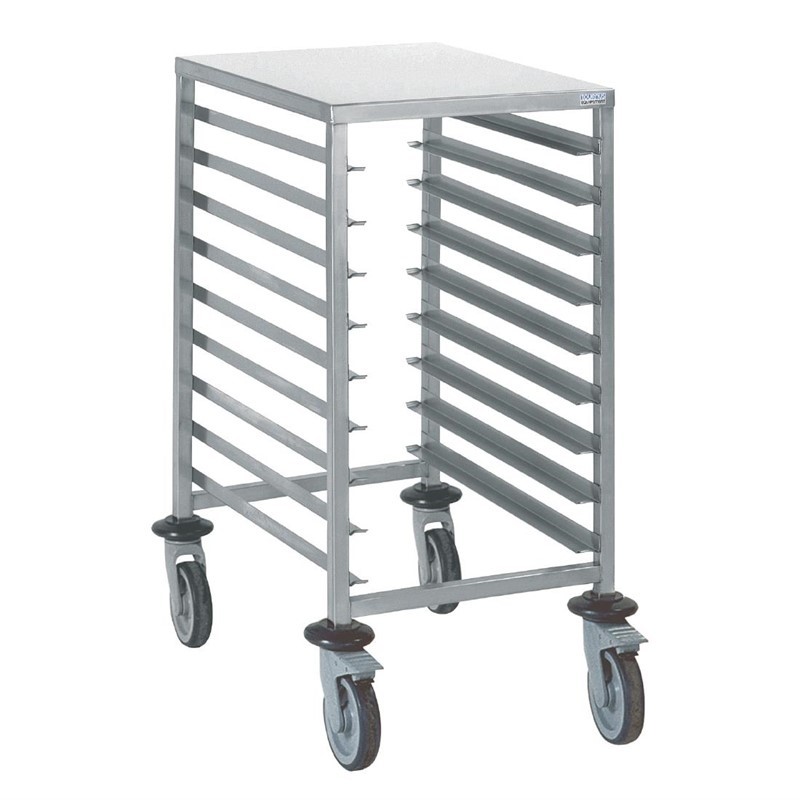 Deze hoogwaardige, RVS regaalwagen van Tournus heeft 9 etages en is ideaal voor kleine horecagelegenheden. De Euronorm bladen (60x40cm) passen perfect in de geleiders. De regaalwagen is voorzien van 4 zwenkwielen om items veilig en snel van en naar de keuken te brengen. Alle wielen zijn voorzien van ronde bumpers om schade tijdens transport te voorkomen.