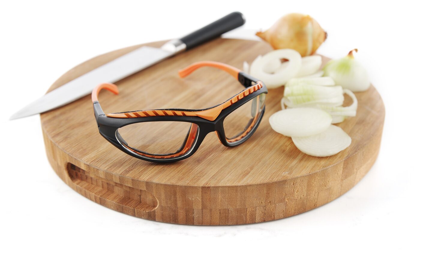 Draag de bril tijdens het uien snijden om traanogen te voorkomen.