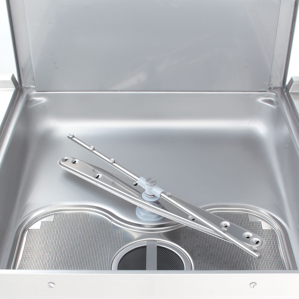 De “Break tank” is een antivervuilingsvoorziening van het type AB (Britse normen). 1) Het voorkomt dat het water in het reservoir (met reinigingsmiddel) terugstroomt naar het distributiesysteem. 2) Tijdens het hele spoelproces garandeert de pomp een constante druk, terwijl het drogen en de hygiëne worden gegarandeerd door een constante T° van 85°C tot de laatste druppel water!