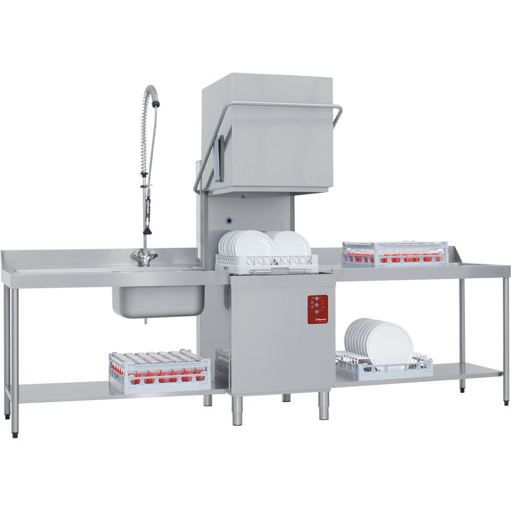 De “Break tank” is een antivervuilingsvoorziening van het type AB (Britse normen). 1) Het voorkomt dat het water in het reservoir (met reinigingsmiddel) terugstroomt naar het distributiesysteem. 2) Tijdens het hele spoelproces garandeert de pomp een constante druk, terwijl het drogen en de hygiëne worden gegarandeerd door een constante T° van 85°C tot de laatste druppel water!
