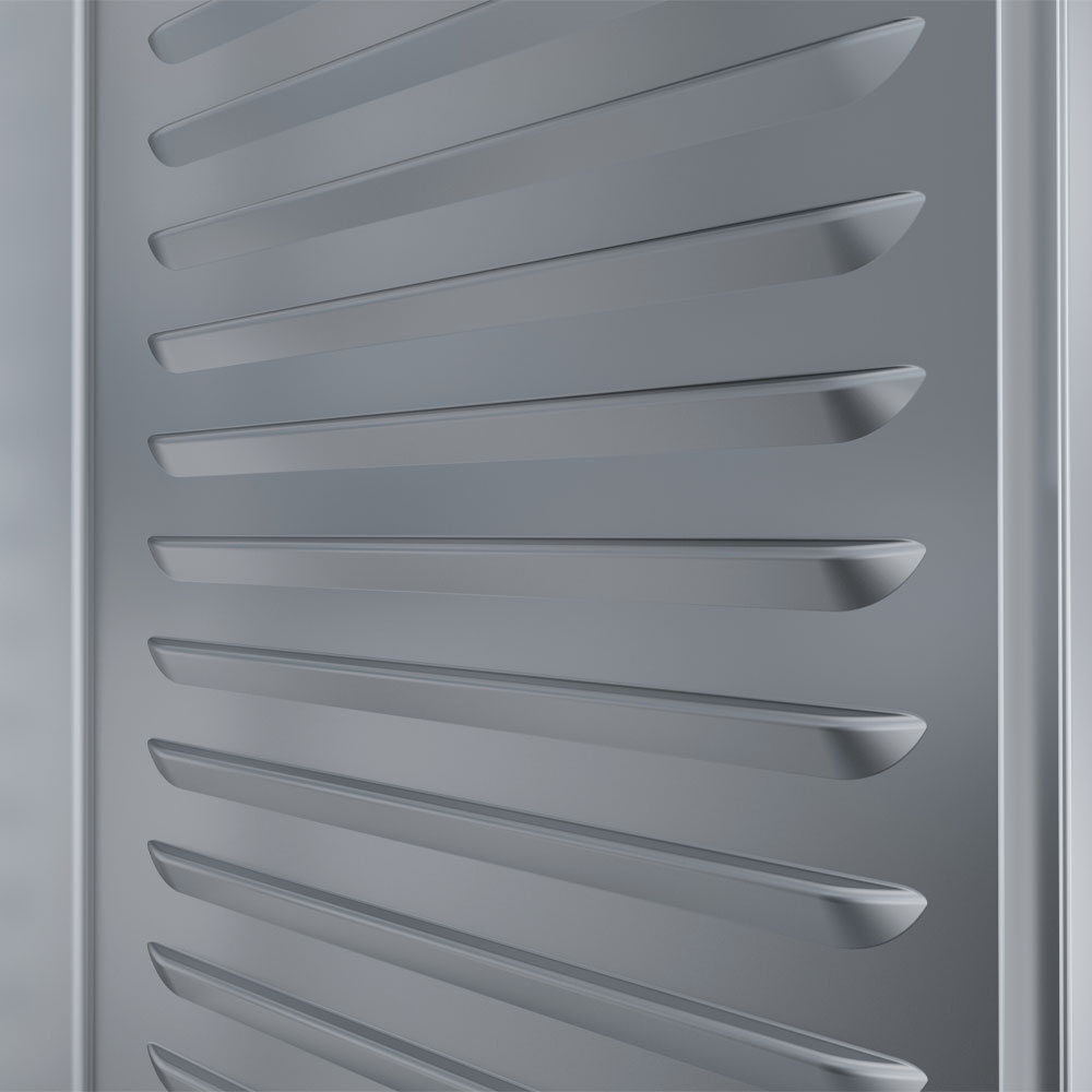 - Wanden voorzien van diepgetrokken “monobloc” rails.