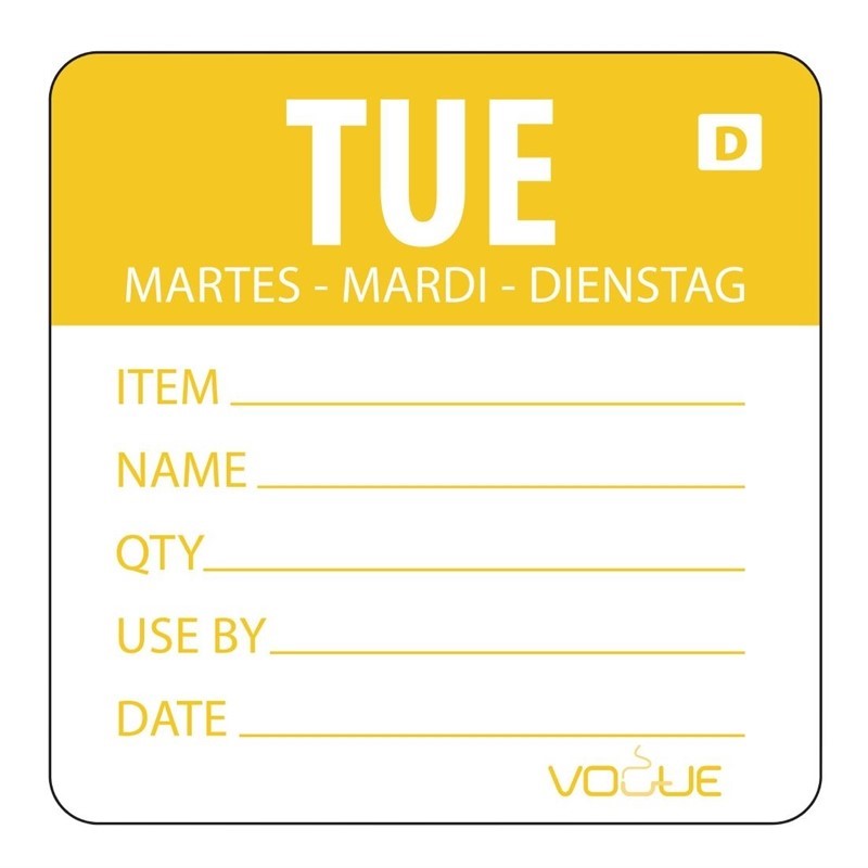 Rol van 250 oplosbare, kleurcode stickers om naast de dagstickers te gebruiken, ideaal om zeker te weten dat al het voedsel, gebruikt en bereidt in professionele keukens, vers is en niet over de datum is.