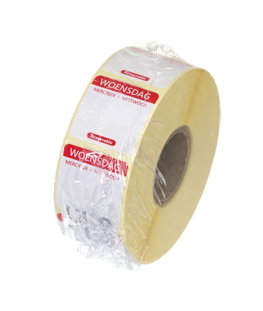 Zelfklevende etiketten voor eenvoudige identificatie van halffabricaten en eindproducten; te gebruiken om te voldoen aan de voedselveiligheidsnormen in de horeca.Ruimte voor extra notities.