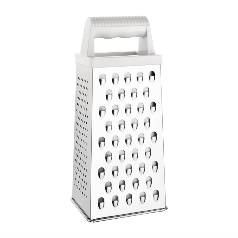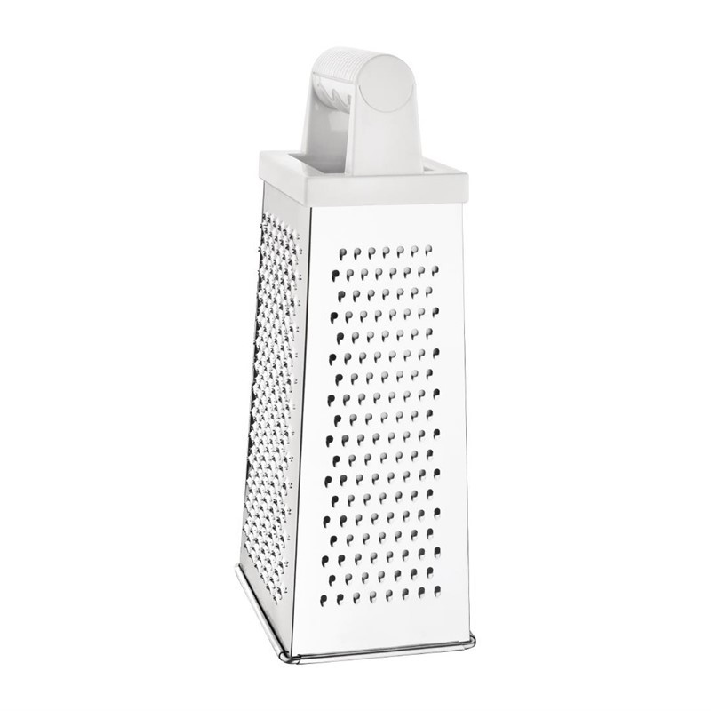 RVS rasp met sterke ABS handgreep die zeer robuust en comfortabel in gebruik is. Met 4 zijden voor 4 verschillende bewerkingen en geschikt voor het raspen van allerlei producten, van kaas tot wortel. Of u deze rasp nu in uw professionele keuken of in de keuken thuis gebruik, de rasp zal een aanwinst zijn en helpt u sneller en efficiënter te werken.