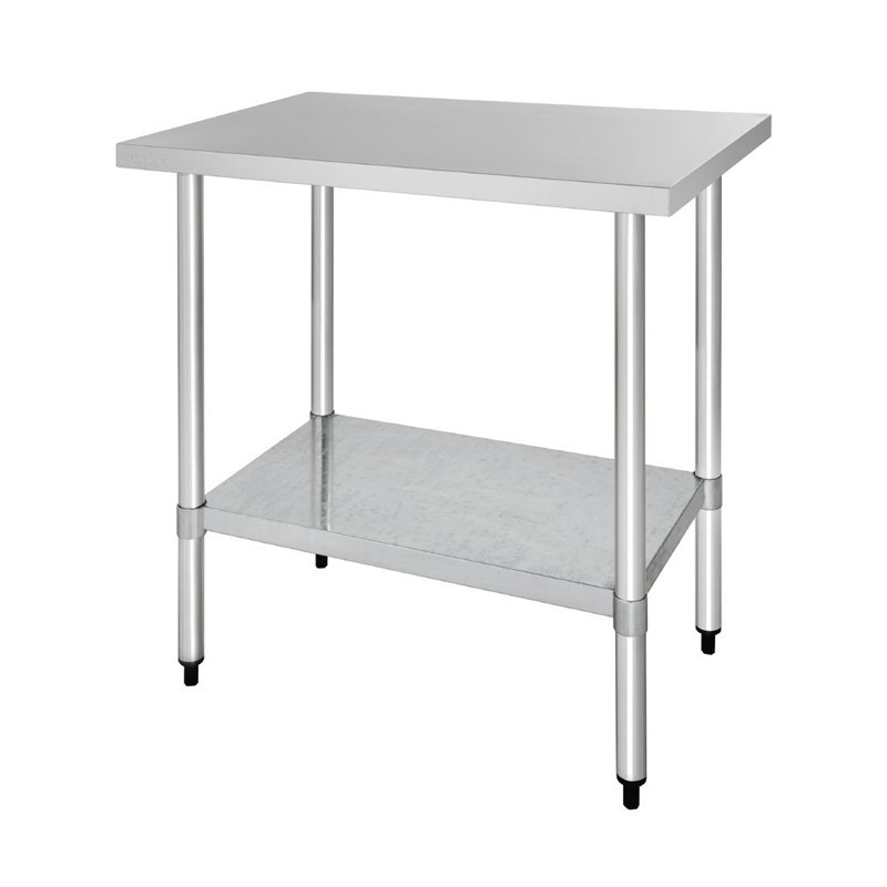 Creëer een praktische en eenvoudig te gebruiken plek om voedsel te bereiden in uw drukke, professionele keuken met onze RVS werktafels van Vogue. Deze 90cm lange tafel heeft een sterk en hygiënisch RVS werkblad dat bestand is tegen dagelijks gebruik in de meest drukke en veeleisende keukens en voedselbereidingsruimtes. Omdat deze tafel geen achteropstand heeft kan hij midden in ruimtes geplaatst worden of van de muur af zodat hij van meerdere kanten gebruikt kan worden, voor optimale efficiëntie.