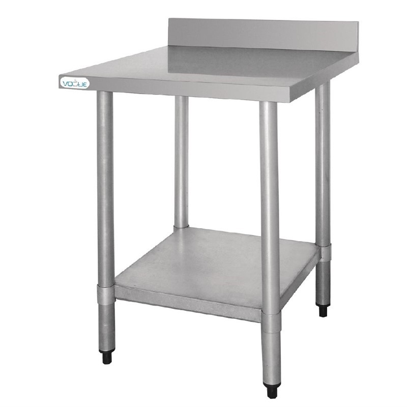 Creëer een praktische en duurzame plek om voedsel te bereiden met deze RVS werktafel van Vogue. Zo heeft u een efficiënte keuken om in te werken, ook op drukkere momenten. Het 90cm lange blad is gemaakt van sterk RVS en bestand tegen dagelijks gebruik in veeleisende keukens, maar ook eenvoudig te reinigen, voor een optimale hygiëne. Het onderblad biedt praktische opbergruimte en de achteropstand voorkomt dat water, voedsel, keukengerei en pannen achter de werktafel terechtkomen.