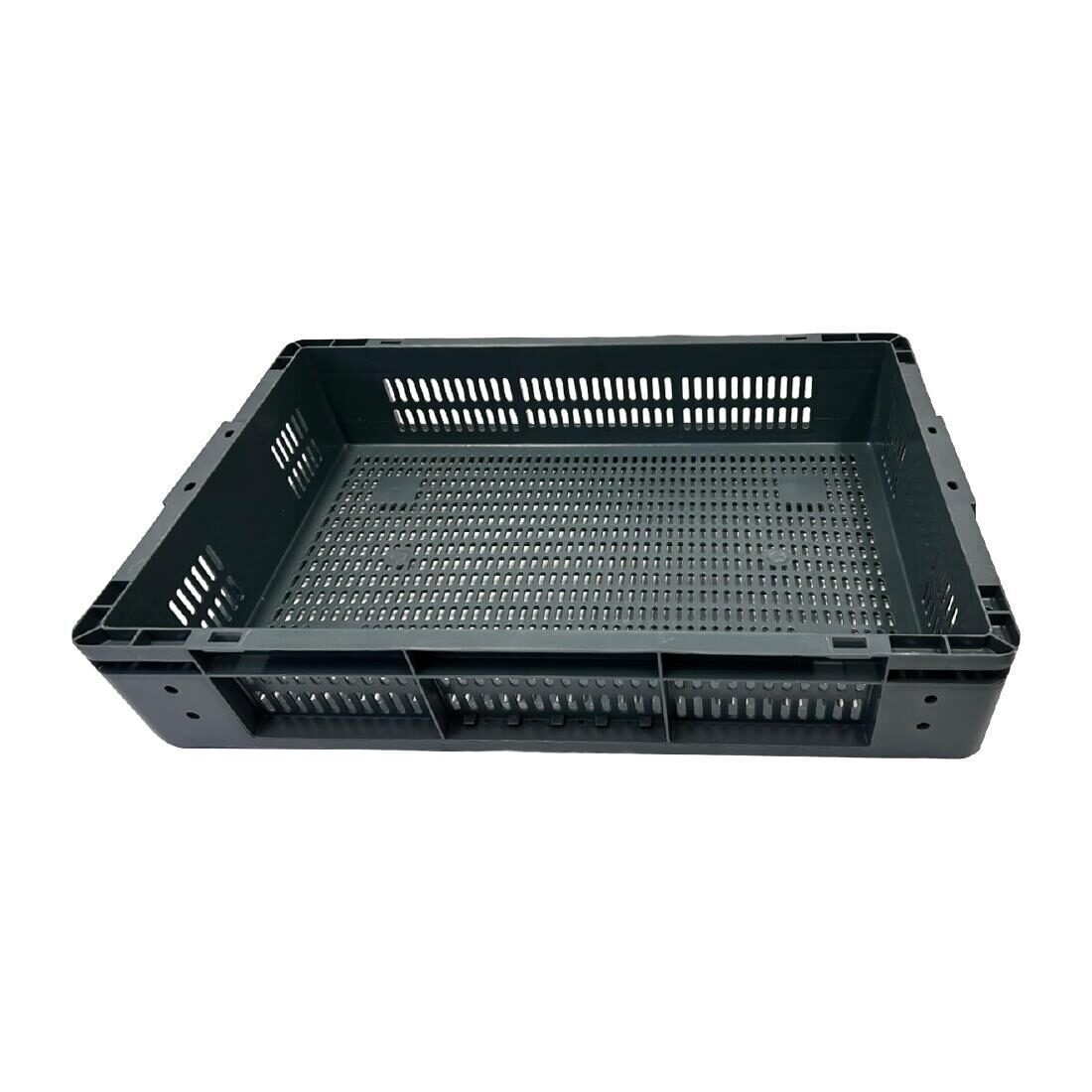 De 600 x 400 mm grote Vogue opvouwbare transportkrat is sterk en stevig en biedt de perfecte oplossing voor het veilig verplaatsen van spullen. Dankzij het duurzame, versterkte ontwerp is de box uitzonderlijk robuust en speciaal gemaakt voor dagelijks commercieel gebruik in drukke voedselruimtes. Perforaties in de bodem en zijkanten zorgen voor een luchtstroom door de hele krat en zorgen indien nodig voor drainage. Met een royale interne holte kan de kist een grote lading herbergen, terwijl de ingebouwde handgrepen ervoor zorgen dat u een veilige grip krijgt als deze moet worden opgetild. Bovendien is de krat voedselveilig, zodat je indien nodig ingrediënten kunt bewaren of vervoeren. Het is ook gemakkelijk schoon te maken: gewoon ontsmetten en schoonvegen.