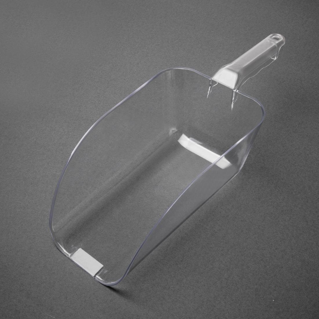 Deze grote, multifunctionele polycarbonaat schep is vaatwasmachinebestendig en heeft groeven in het handvat voor een comfortabele en stevige grip. Handig voor in winkels.