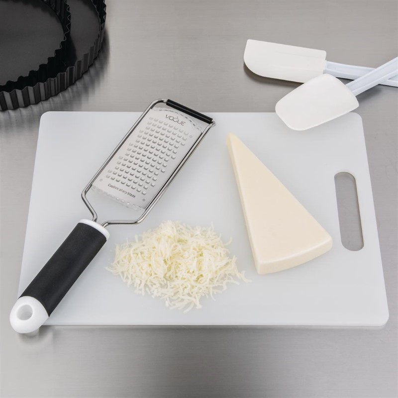 Hoge kwaliteit rasp van topmerk Vogue met zeer robuust polypropyleen heft voor een goede, comfortabele grip en daardoor veilig te gebruiken. De RVS bladen raspen allerlei soorten producten, van kaas tot wortel, en zijn zeer duurzaam.