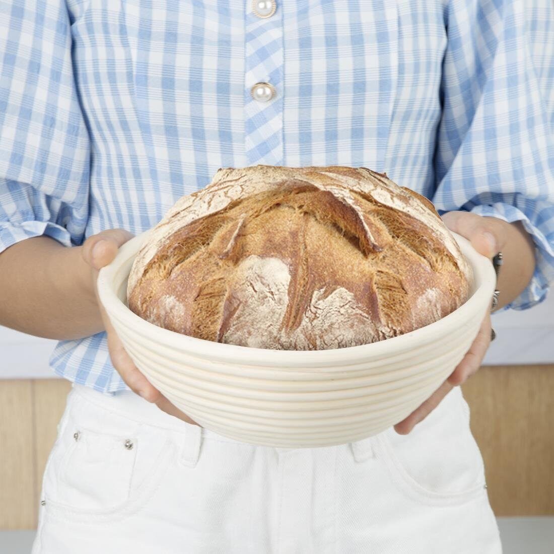 Ivoorkleurige rotan mandjes voor het opslaan, vervoeren en laten rijzen van deeg.