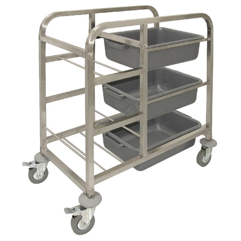 Deze RVS afruimwagen van Vogue is van hoge kwaliteit en ideaal voor in hotels, scholen en ziekenhuizen. De bumpers op de 4 wielen helpen schade voorkomen tijdens transport en de 2 geremde wielen maken het gebruik extra veilig. Wordt plat verpakt geleverd en is zeer eenvoudig te monteren. Te gebruiken met J849 afruimbakken (3 inbegrepen).