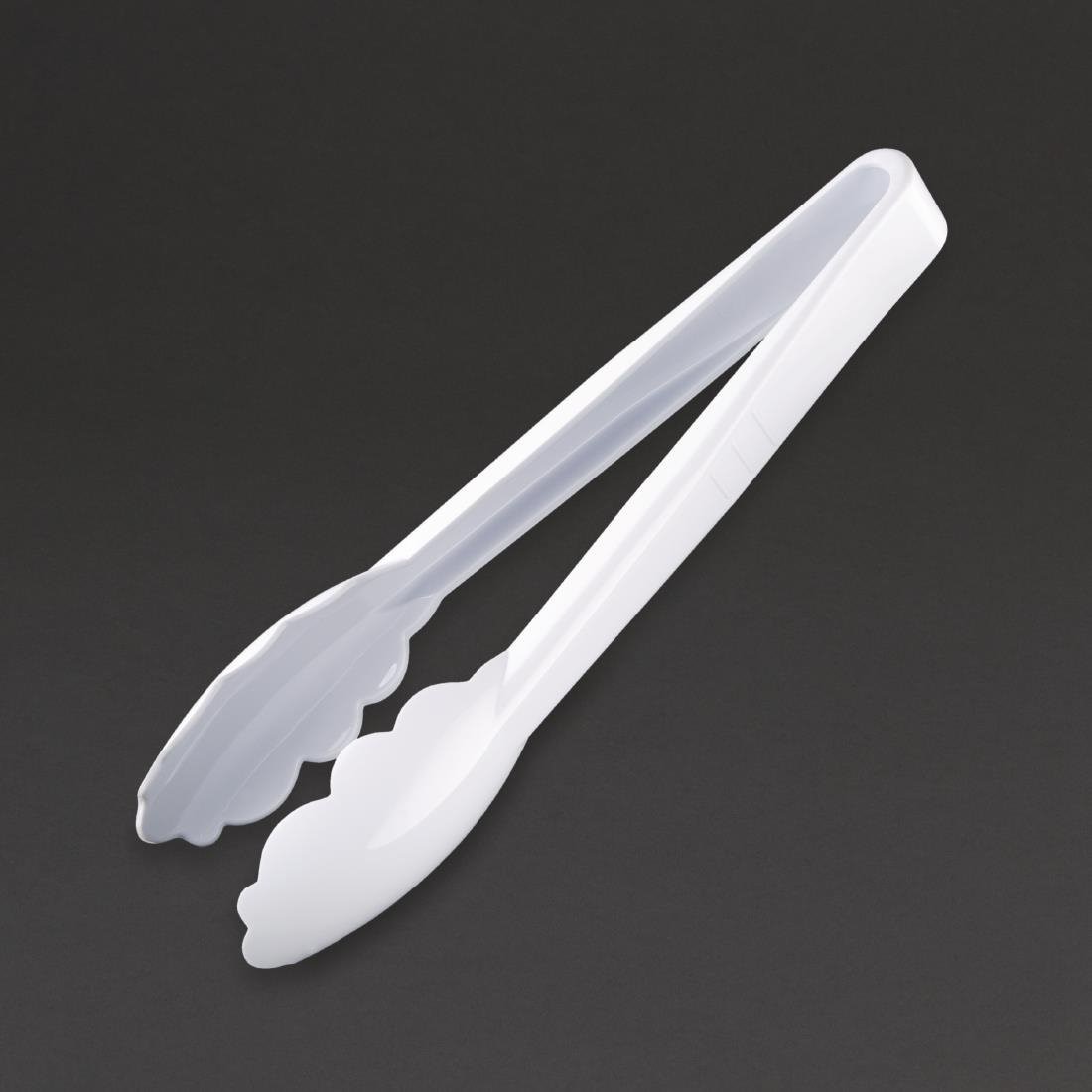 Deze witte polycarbonaat serveertang van Vogue is geschikt voor allerlei toepassingen in de keuken en zeer duurzaam. Verder heeft de serveertang een brede bek zodat u ook grote etenswaren gemakkelijk kunt grijpen.