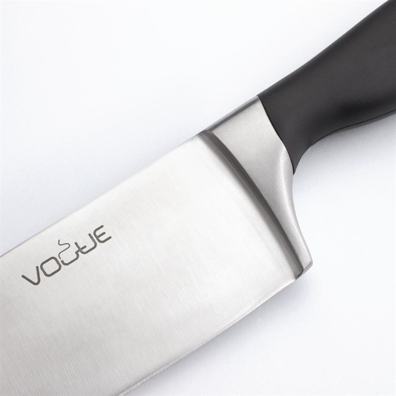 Dit softgrip koksmes van Vogue heeft een RVS lemmet met een hoog koolstofgehalte, waardoor deze lang perfect scherp blijft. Dankzij de duurzame brede krop heeft het mes een perfecte balans en het gewicht om perfect te kunnen snijden. Het zachte heft is ergonomisch ontworpen en dus comfortabel. Wij raden u aan het mes niet in de vaatwasmachine te wassen.