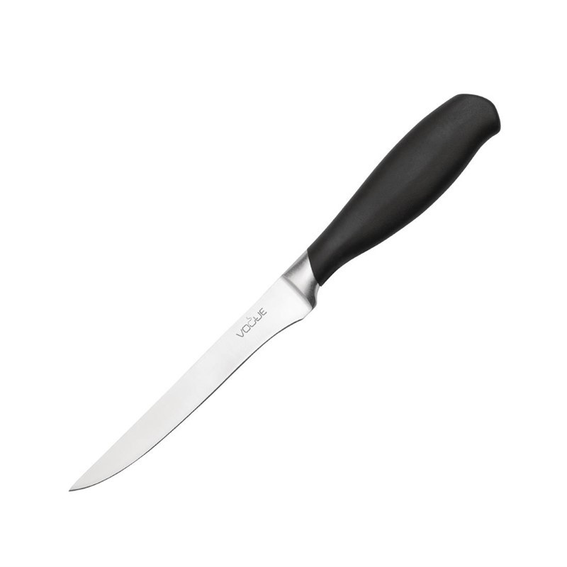Dit softgrip uitbeenmes van Vogue heeft een RVS lemmet met een hoog koolstofgehalte, waardoor deze lang perfect scherp blijft. Dankzij de duurzame brede krop heeft het mes een perfecte balans en het gewicht om perfect te kunnen snijden. Het zachte heft is ergonomisch ontworpen en dus comfortabel. Wij raden u aan het mes niet in de vaatwasmachine te wassen.