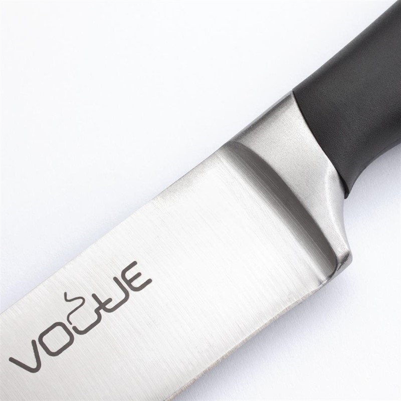 Dit softgrip vleesmes van Vogue heeft een RVS lemmet met een hoog koolstofgehalte, waardoor deze lang perfect scherp blijft. Dankzij de duurzame brede krop heeft het mes een perfecte balans en het gewicht om perfect te kunnen snijden. Het zachte heft is ergonomisch ontworpen en dus comfortabel. Wij raden u aan het mes niet in de vaatwasmachine te wassen.