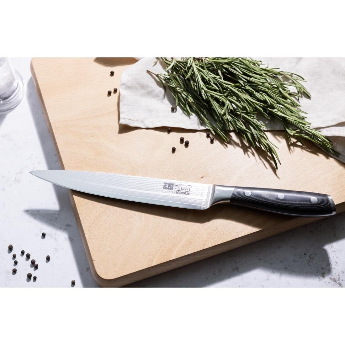 Fraai vormgegeven, klassieke messen met Japanse VG-10 RVS kernen die zijn gehard tot 60 ° Rockwell. Hierdoor leveren ze uitzonderlijke prestaties en blijven ze extra lang scherp. De kern is bekleed met twee lagen corrosiebestendig damaststaal. Het ergonomische heft biedt uitstekende grip en geeft de messen de finishing touch.