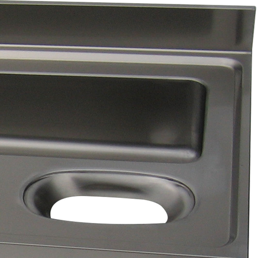 - Voorzien van een afvalopening. Opstaande rand achteraan.