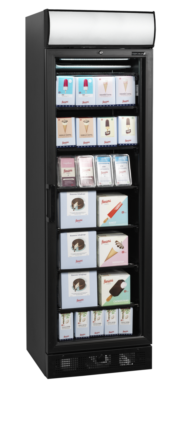De UFSC-serie displayvriezers biedt uitstekende productpresentatie tegen een concurrerende prijs. Hij heeft een verwarmde glazen deur om condensatie te voorkomen en dooiwaterafvoer voor eenvoudig onderhoud. Hij heeft statische koeling en vaste vriesplateaus met ingebouwde verdamperspoelen voor een gelijkmatige temperatuur in de hele kast. De displayvriezer is verkrijgbaar in zwart en wit, met of zonder verlichte kap.