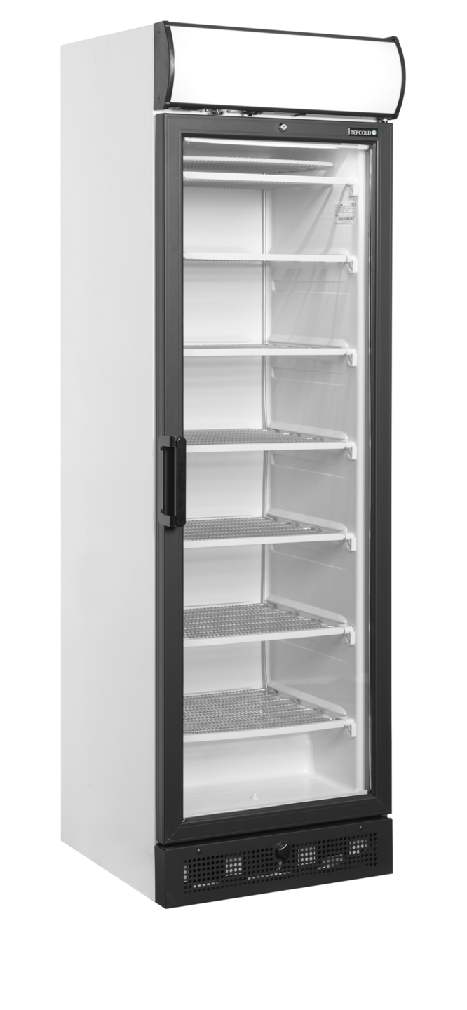 De UFSC-serie displayvriezers biedt uitstekende productpresentatie tegen een concurrerende prijs. Hij heeft een verwarmde glazen deur om condensatie te voorkomen en dooiwaterafvoer voor eenvoudig onderhoud. Hij heeft statische koeling en vaste vriesplateaus met ingebouwde verdamperspoelen voor een gelijkmatige temperatuur in de hele kast. De displayvriezer is verkrijgbaar in zwart en wit, met of zonder verlichte kap.