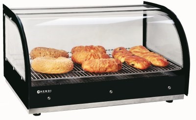 Gehard glazen zijden en gebogen glazen front Roestvast stalen behuizing Voorzien van infraroodverwarming Grote glazen deur aan achterzijde, de binnenruimte is volledig bereikbaar Eenvoudig schoon te maken Voorzien van uitneembaar kruimelrooster Temperatuur traploos instelbaar tot 85 ˚C Wordt geleverd met GN 1/1 rooster met extra veel spijlen geschikt voor kleinere producten